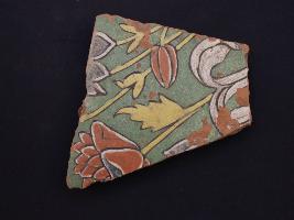 | Description / विवरण | It s a fragment of glazed tile made by terracotta with floral design on it. It is well fired and colours are red, blue, green, white and yellow. Broken from all sides. Rubbing on the surface. |