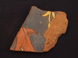 | Description / विवरण | It s a fragment of glazed tile made by terracotta with floral design on it. It is well fired and colours are red, blue and yellow. Broken from all sides. Rubbing on the surface. |