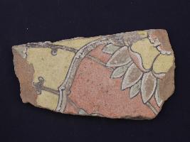 | Description / विवरण | It s a fragment of glazed tile made by terracotta with floral design on it. It is well fired and colours are red, blue, green, white and yellow. Broken from all sides. Rubbing on the surface. |