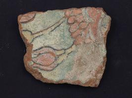 | Description / विवरण | It s a fragment of glazed tile made by terracotta with floral design on it. It is well fired and colours are red, blue and yellow. Broken from all sides. Rubbing on the surface. |