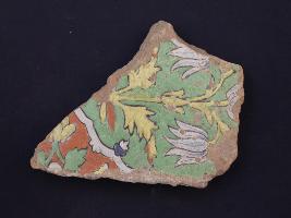 | Description / विवरण | It s a fragment of glazed tile made by terracotta with floral design on it. It is well fired and colours are red, blue, green, white and yellow. Broken from all sides. Rubbing on the surface. |