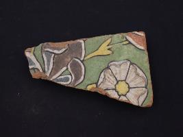 | Description / विवरण | It s a fragment of glazed tile made by terracotta with floral design on it. It is well fired and colours are red, blue, green, white and yellow. Broken from all sides. Rubbing on the surface. |