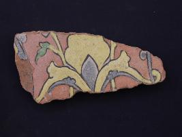 | Description / विवरण | It s a fragment of glazed tile made by terracotta with floral design on it. It is well fired and colours are red, blue, green and yellow. Broken from all sides. Rubbing on the surface. |