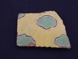| Description / विवरण | It s a fragment of glazed tile made by terracotta with floral design on it. It is well fired and colours are blue, green and yellow. Broken from all sides. Rubbing on the surface. |
