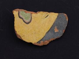 | Description / विवरण | It s a fragment of glazed tile made by terracotta with floral design on it. It is well fired and colours are blue, green and yellow. Broken from all sides. Rubbing on the surface. |
