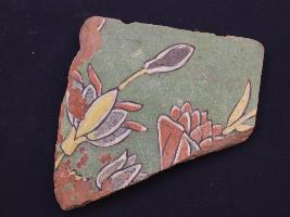 | Description / विवरण | It s a fragment of glazed tile made by terracotta with floral design on it. It is well fired and colours are red, blue, green, white and yellow. Broken from all sides. Rubbing on the surface. |