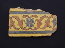 | Description / विवरण | It s a fragment of glazed tile made by terracotta with floral design on it. It is well fired and colours are red, blue and yellow. Broken from all sides. Rubbing on the surface. |