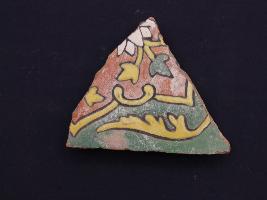 | Description / विवरण | It s a fragment of glazed tile made by terracotta with floral design on it. It is well fired and colours are red, blue, green, white and yellow. Broken from all sides. Rubbing on the surface. |