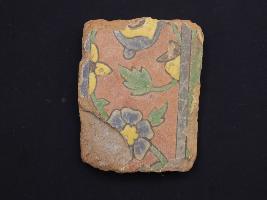 | Description / विवरण | It s a fragment of glazed tile made by terracotta with floral design on it. It is well fired and colours are red, blue, green and yellow. Broken from all sides. Rubbing on the surface. |