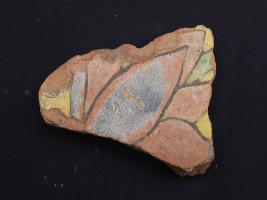 | Description / विवरण | It s a fragment of glazed tile made by terracotta with floral design on it. It is well fired and colours are red, blue, green and yellow. Broken from all sides. Rubbing on the surface. |