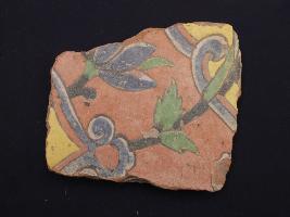 | Description / विवरण | It s a fragment of glazed tile made by terracotta with floral design on it. It is well fired and colours are red, blue, green, white and yellow. Broken from all sides. Rubbing on the surface. |