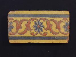 | Description / विवरण | It s a fragment of glazed tile made by terracotta with floral design on it. It is well fired and colours are red, blue, green, white and yellow. Broken from all sides. Rubbing on the surface. |