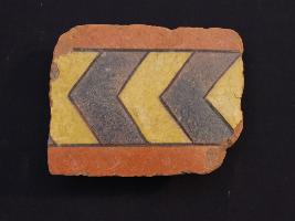 | Description / विवरण | It s a fragment of glazed tile made by terracotta with floral design on it. It is well fired and colours are red, blue and yellow. Broken from all sides. Rubbing on the surface. |