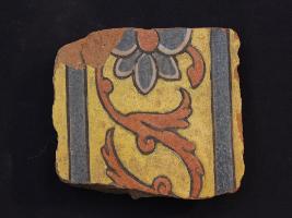 | Description / विवरण | It s a fragment of glazed tile made by terracotta with floral design on it. It is well fired and colours are red, blue and yellow. Broken from all sides. Rubbing on the surface. |