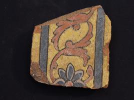 | Description / विवरण | It s a fragment of glazed tile made by terracotta with floral design on it. It is well fired and colours are red, blue and yellow. Broken from all sides. Rubbing on the surface. |