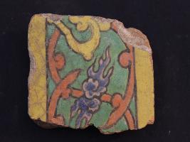 | Description / विवरण | It s a fragment of glazed tile made by terracotta with floral design on it. It is well fired and colours are red, blue, green and yellow. Broken from all sides. Rubbing on the surface. |