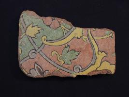 | Description / विवरण | It s a fragment of glazed tile made by terracotta with floral design on it. It is well fired and colours are red, blue, green and yellow. Broken from all sides. Rubbing on the surface. |