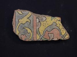 | Description / विवरण | It s a fragment of glazed tile made by terracotta with floral design on it. It is well fired and colours are red, blue, green and yellow. Broken from all sides. Rubbing on the surface. |