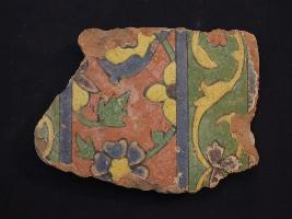 | Description / विवरण | It s a fragment of glazed tile made by terracotta with floral design on it. It is well fired and colours are red, blue, green and yellow. Broken from all sides. Rubbing on the surface. |