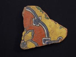 | Description / विवरण | It s a fragment of glazed tile made by terracotta with floral design on it. It is well fired and colours are red, blue, green and yellow. Broken from all sides. Rubbing on the surface. |