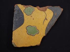 | Description / विवरण | It s a fragment of glazed tile made by terracotta with floral design on it. It is well fired and colours are blue, green and yellow. Broken from all sides. Rubbing on the surface. |