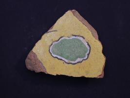 | Description / विवरण | It s a fragment of glazed tile made by terracotta with floral design on it. It is well fired and colours are blue, green and yellow. Broken from all sides. Rubbing on the surface. |