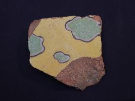 | Description / विवरण | It s a fragment of glazed tile made by terracotta with floral design on it. It is well fired and colours are blue, green and yellow. Broken from all sides. Rubbing on the surface. |