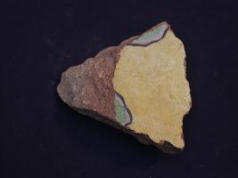 | Description / विवरण | It s a fragment of glazed tile made by terracotta with floral design on it. It is well fired and colours are blue, green and yellow. Broken from all sides. Rubbing on the surface. |