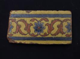 | Description / विवरण | It s a fragment of glazed tile made by terracotta with floral design on it. It is well fired and colours are red, blue, green and yello. Broken from all sides. Rubbing on the surface. |