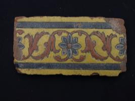 | Description / विवरण | It s a fragment of glazed tile made by terracotta with floral design on it. It is well fired and colours are red, blue, green and yello. Broken from all sides. Rubbing on the surface. |