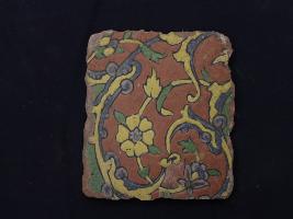 | Description / विवरण | It s a fragment of glazed tile made by terracotta with floral design on it. It is well fired and colours are red, blue, green and yello. Broken from all sides. Rubbing on the surface. |