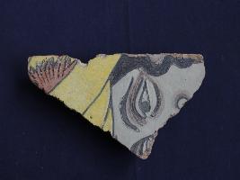 | Description / विवरण | It s a fragment of glazed tile made by terracotta with human face. It is well fired and colours are red, blue, yellow and black. Broken from all sides. Rubbing on the surface. |