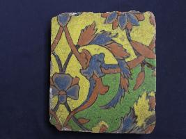 | Description / विवरण | It s a fragment of glazed tile made by terracotta with floral design on it. It is well fired and colours are red, blue, green and yellow. Broken from all sides. Rubbing on the surface. |
