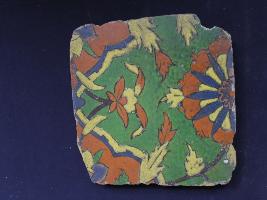 | Description / विवरण | It s a fragment of glazed tile made by terracotta with floral design on it. It is well fired and colours are red, blue, green and yellow. Broken from all sides. Rubbing on the surface. |