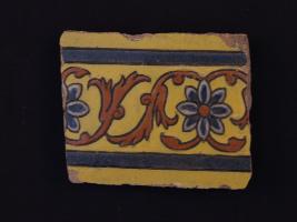 | Description / विवरण | It s a fragment of glazed tile made by terracotta with floral design on it. It is well fired and colours are red, blue and yellow. Broken from all sides. Rubbing on the surface. |