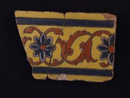 | Description / विवरण | It s a fragment of glazed tile made by terracotta with floral design on it. It is well fired and colours are red, blue and yellow. Broken from all sides. Rubbing on the surface. |