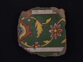 | Description / विवरण | It s a fragment of glazed tile made by terracotta with floral design on it. It is well fired and colours are red, blue, green and yellow. Broken from all sides. Rubbing on the surface. |