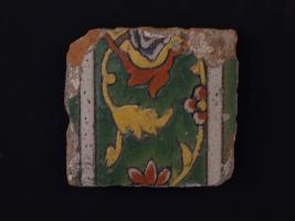 | Description / विवरण | It s a fragment of glazed tile made by terracotta with floral design on it. It is well fired and colours are red, blue, green, white and yellow. Broken from all sides. Rubbing on the surface. |