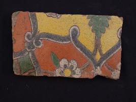 | Description / विवरण | It s a fragment of glazed tile made by terracotta with floral design on it. It is well fired and colours are red, blue, green, white and yellow. Broken from all sides. Rubbing on the surface. |