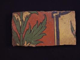 | Description / विवरण | It s a fragment of glazed tile made by terracotta with floral design on it. It is well fired and colours are red, blue, green and yellow. Broken from all sides. Rubbing on the surface. |