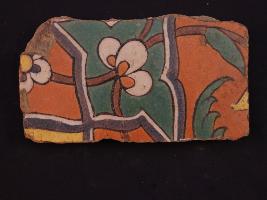 | Description / विवरण | It s a fragment of glazed tile made by terracotta with floral design on it. It is well fired and colours are red, blue, green, white and yellow. Broken from all sides. Rubbing on the surface. |