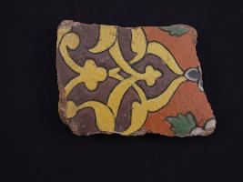 | Description / विवरण | It s a fragment of glazed tile made by terracotta with floral design on it. It is well fired and colours are red, blue, green, white and yellow. Broken from all sides. Rubbing on the surface. |
