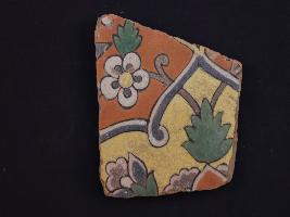 | Description / विवरण | It s a fragment of glazed tile made by terracotta with floral design on it. It is well fired and colours are red, blue, green, white and yellow. Broken from all sides. Rubbing on the surface. |