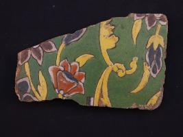 | Description / विवरण | It s a fragment of glazed tile made by terracotta with floral design on it. It is well fired and colours are red, blue, green, white and yellow. Broken from all sides. Rubbing on the surface. |
