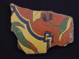 | Description / विवरण | It s a fragment of glazed tile made by terracotta with floral design on it. It is well fired and colours are red, blue, green and yellow. Broken from all sides. Rubbing on the surface. |