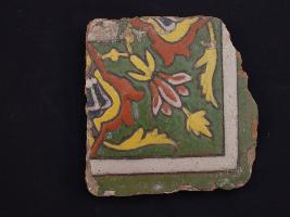 | Description / विवरण | It s a fragment of glazed tile made by terracotta with floral design on it. It is well fired and colours are red, blue, green, white and yellow. Broken from all sides. Rubbing on the surface. |