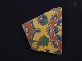 | Description / विवरण | It s a fragment of glazed tile made by terracotta with floral design on it. It is well fired and colours are red, blue, green, white and yellow. Broken from all sides. Rubbing on the surface. |