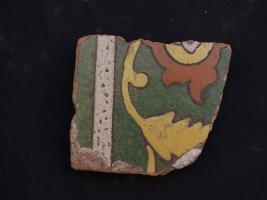 | Description / विवरण | It s a fragment of tile made by terracotta with floral design on it. It is well fired and colours are red, blue, green, white and yellow. Broken from all sides. Rubbing on the surface. |