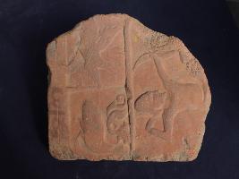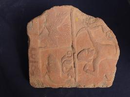 | Description / विवरण | It s a fragment of tile made by terracotta. It is well fired and colour is ochred. Damaged from all sides. Man with arrow and bow on it. Rubbing on the surface. |