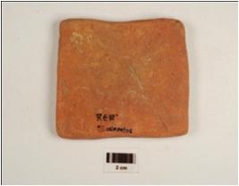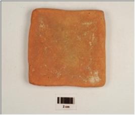 | Description / विवरण | A terracotta tile of rectangular shape, flat surface ,rectangular cross section medium fabric and traces of red slip. |